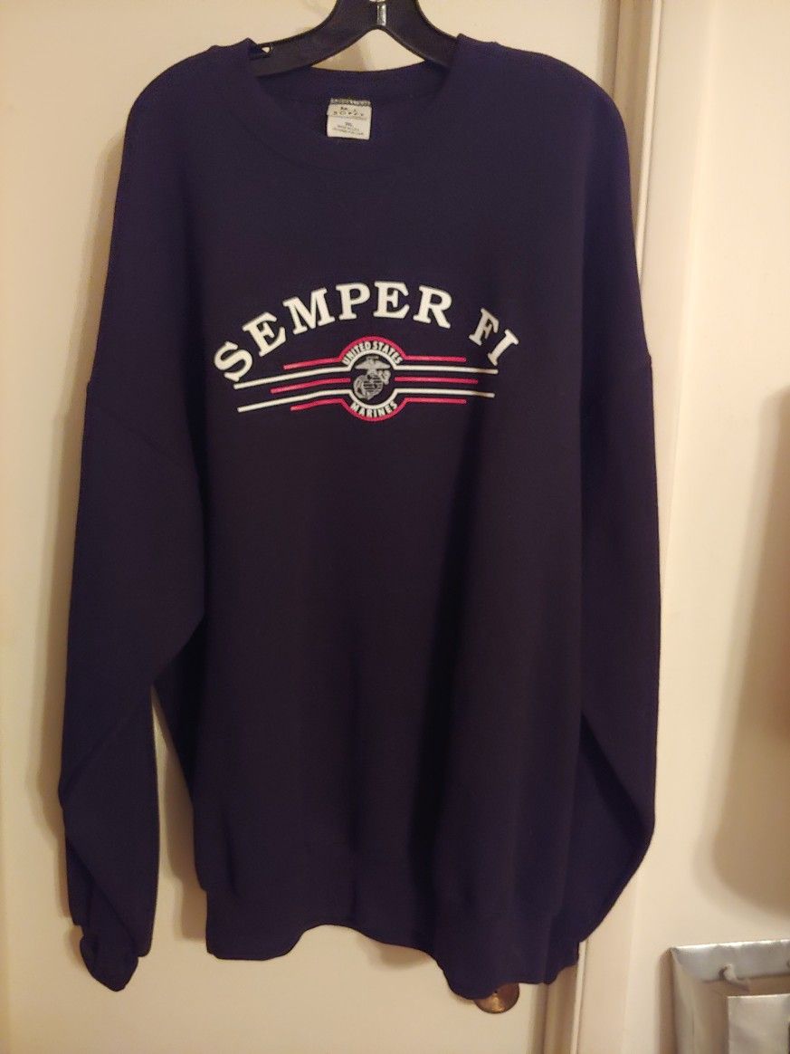 Extra large black sweatshirt heavyweight and t-shirt. Marine Corps motif on both. Sweatshirt $15 t-shirt $10. Located in Pompano Beach off Federal Highway. Both NEW