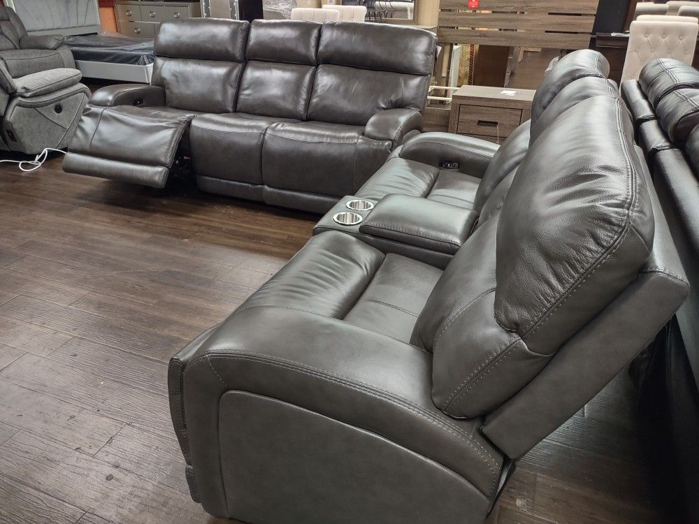 New Top Grain Genuine Leather Sofa And Loveseat With Power Recliners