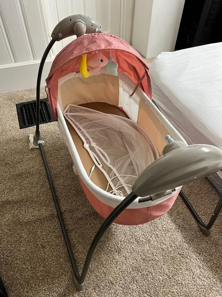 Electric Baby Bassinet Cradle Swing Rock Bed, bluetooth Play Music, Remote Controller
