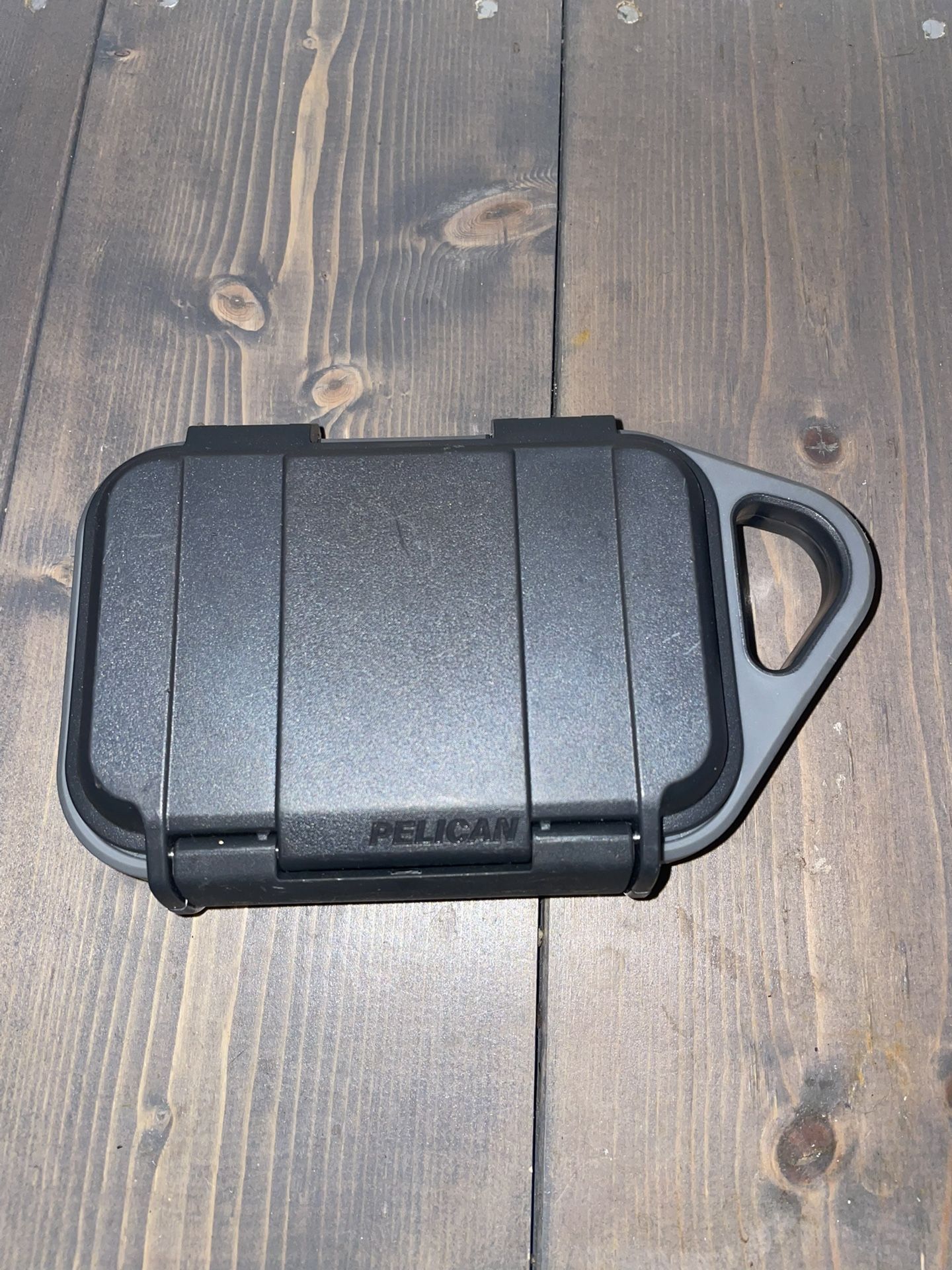 Pelican 1060 Micro Case – Waterproof Hard Case (Black) Genuine Pelican 1060 Micro Case in black. Rugged, waterproof hard case ideal for protecting small electronics, valuables, or gear. Features: • 100% waterproof (O-ring seal) • Crushproof & dustproof • Automatic pressure equalization valve • Secure latch closure • Rubber liner for impact protection • Integrated carry loop Great for: • Phone, wallet, keys • Range gear / EDC • Camera accessories • Boating, kayaking, travel Condition: Good used condition Latch seals tight, no cracks or damage.