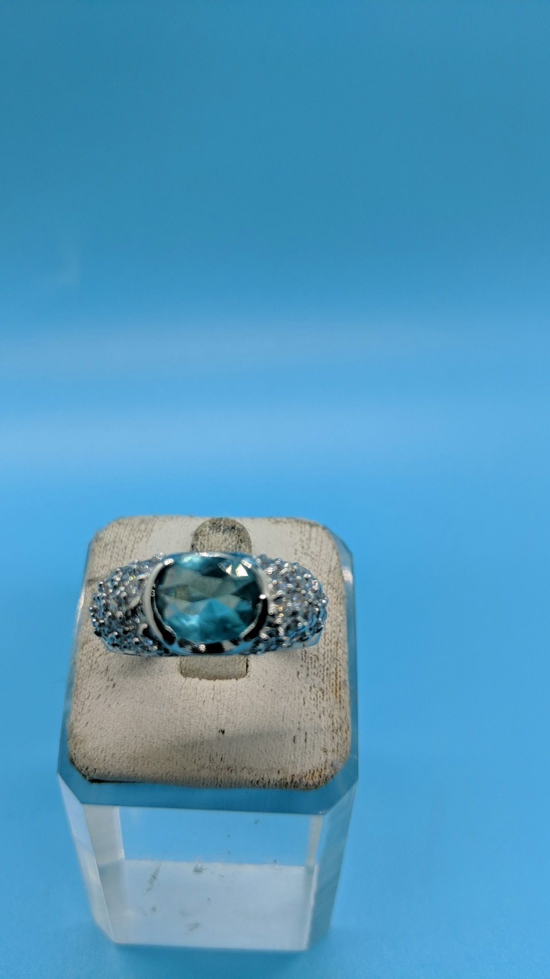 New! Beautiful blue stone and CZ ring. Perfect for Mother's day gift! Size 7