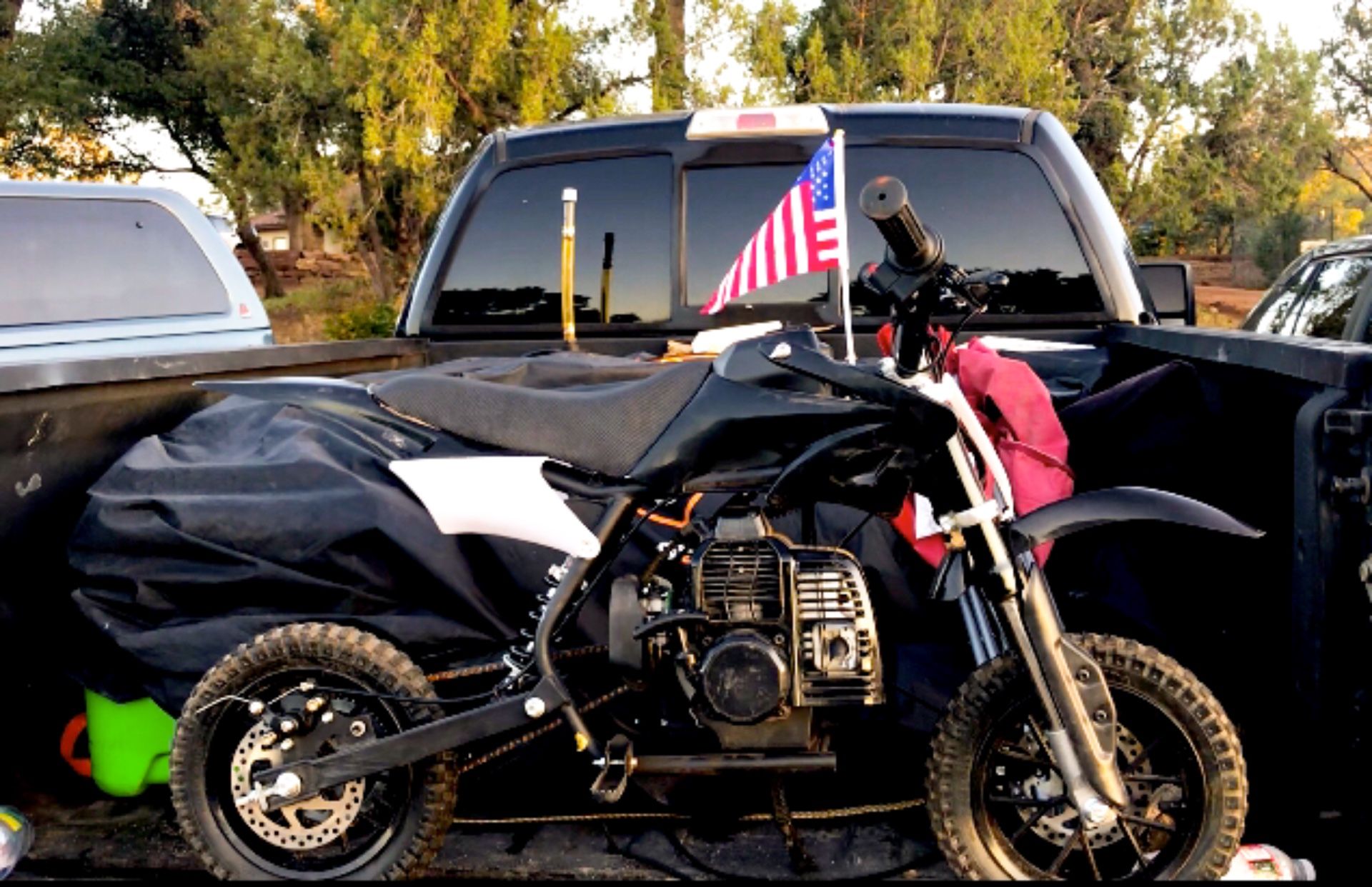 Great kids learning bike!! Pull start “a bit hard on cold starts, but first pull after warms up”. Hand brakes No clutch/No shifting Training wheel mounts Powerful enough for adults to ride, but don’t advise, for stress on the chain.