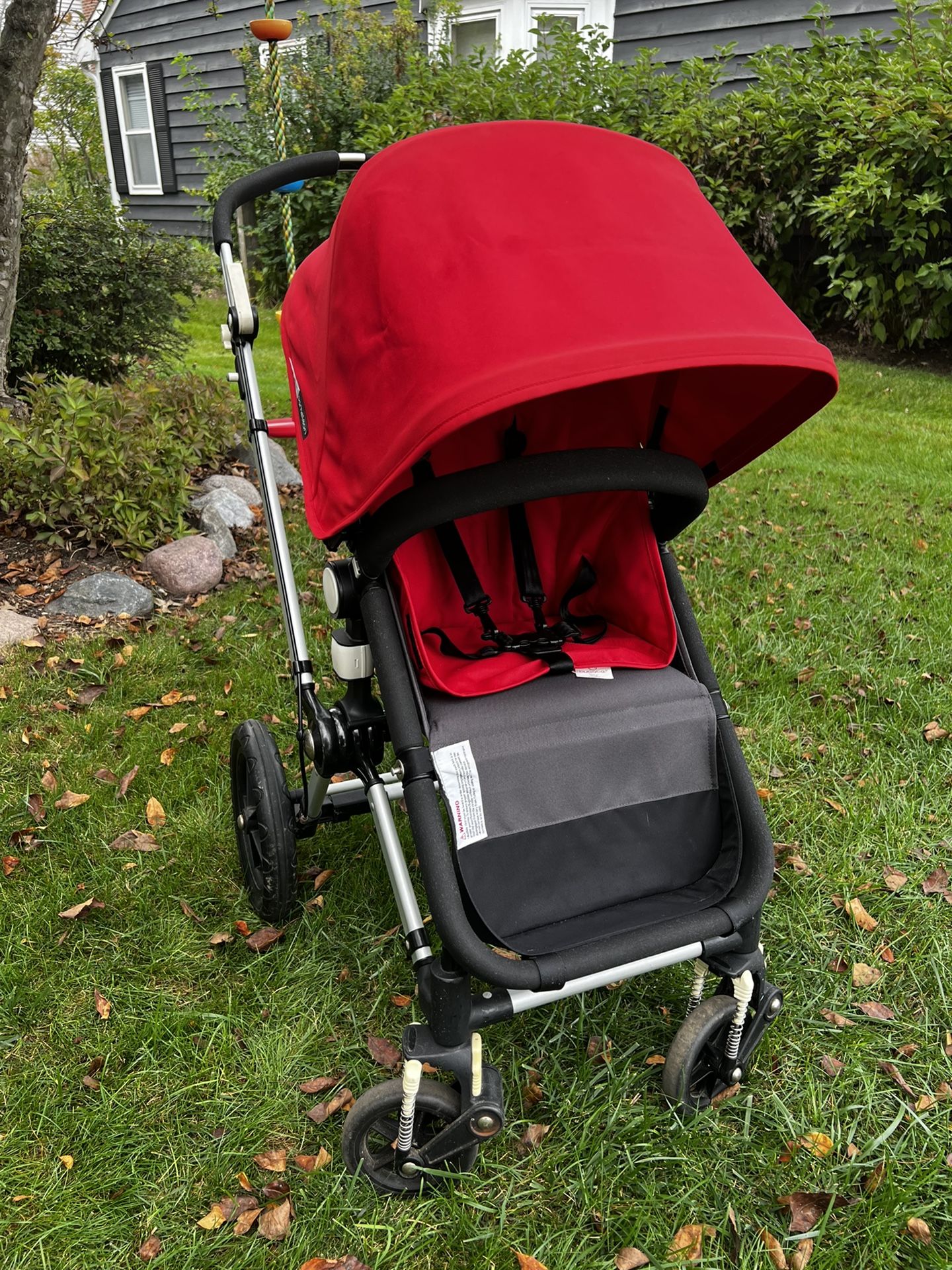 Bugaboo Stroller. Used with two children. Fully functional. Freshly laundered and is ready for use. Willing to deliver locally for small fee. Retail price of stroller when new was over $1,200 & $500 spent on additional accessories. Features: -adjustable handlebar height. -removable belly bar . -seat easily adjust to multiple recline angles. -completely machine washable. - conversation from chair into bassinet. -handle swings over seat from front to back, to adjust to sun or to see baby. Included accessories: -bassinet adapter (utilizes chair frame to transform into basinet). -storage basket for underneath storage . -maintenance kit / wheel kit with pump. -Bumper Bar- removable. -Cupholder. -Winter footmuff (on stroller in picture) . -Parasail (umbrella). -Chicco Car Seat Stroller adapter. -Winter wheels & bag. -Sun canopy in red and orange (two canopies). -All Weather cover (rain fly). -Bassinet & Two Aprons - red and orange. -Mosquito net. Please note: -rust on some of the nuts and bolts (shown in photo - does not impact usability) There’s helpful videos on YouTube that show you how to fully utilize the stroller. We’re also willing to sell separate parts for the right offer.
