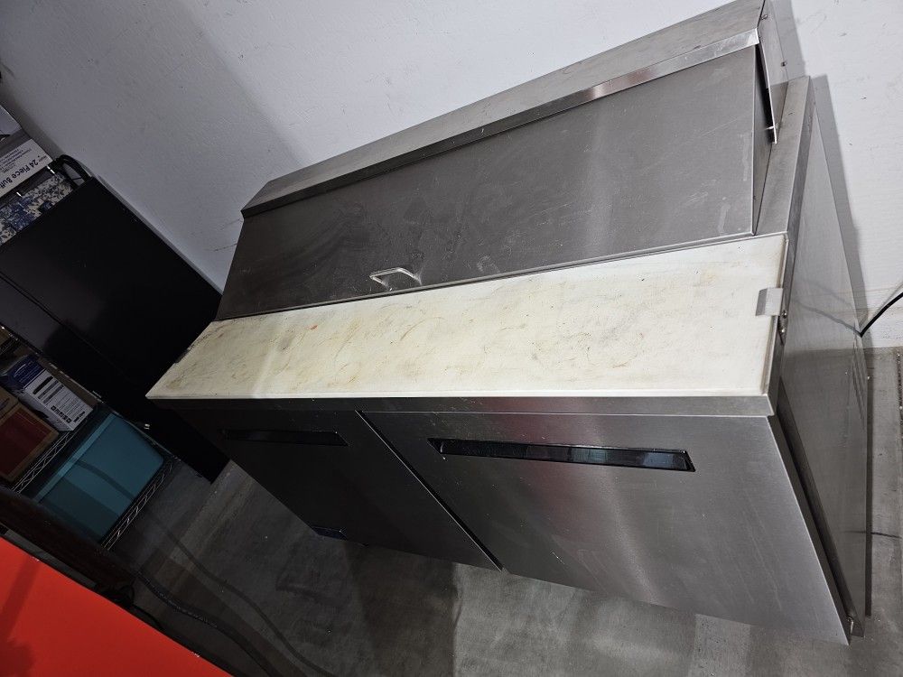Artic Air 61 Cu Ft Commercial Sandwich Prep Table With refrigerated base 115 volt model number AST60R It holds 16 of 1/6 size food pans Cutting board is 11 in depth The dimensions of the entire refrigerator is 43 in tall 30 in deep and 61 in wide and weighs about 385 lb Lightly used for about 1 year Works perfect and is in great condition