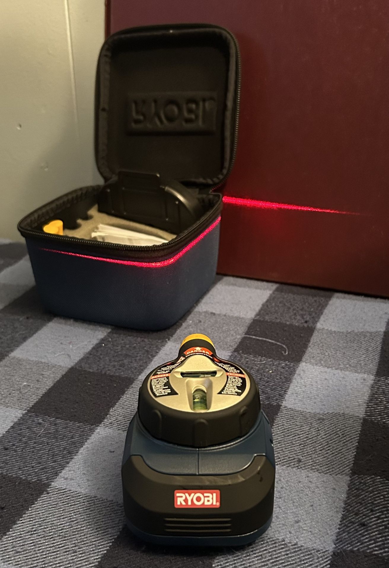 Pocket laser level for small quick jobs, has suction cup on bottom and tripod mount. $10