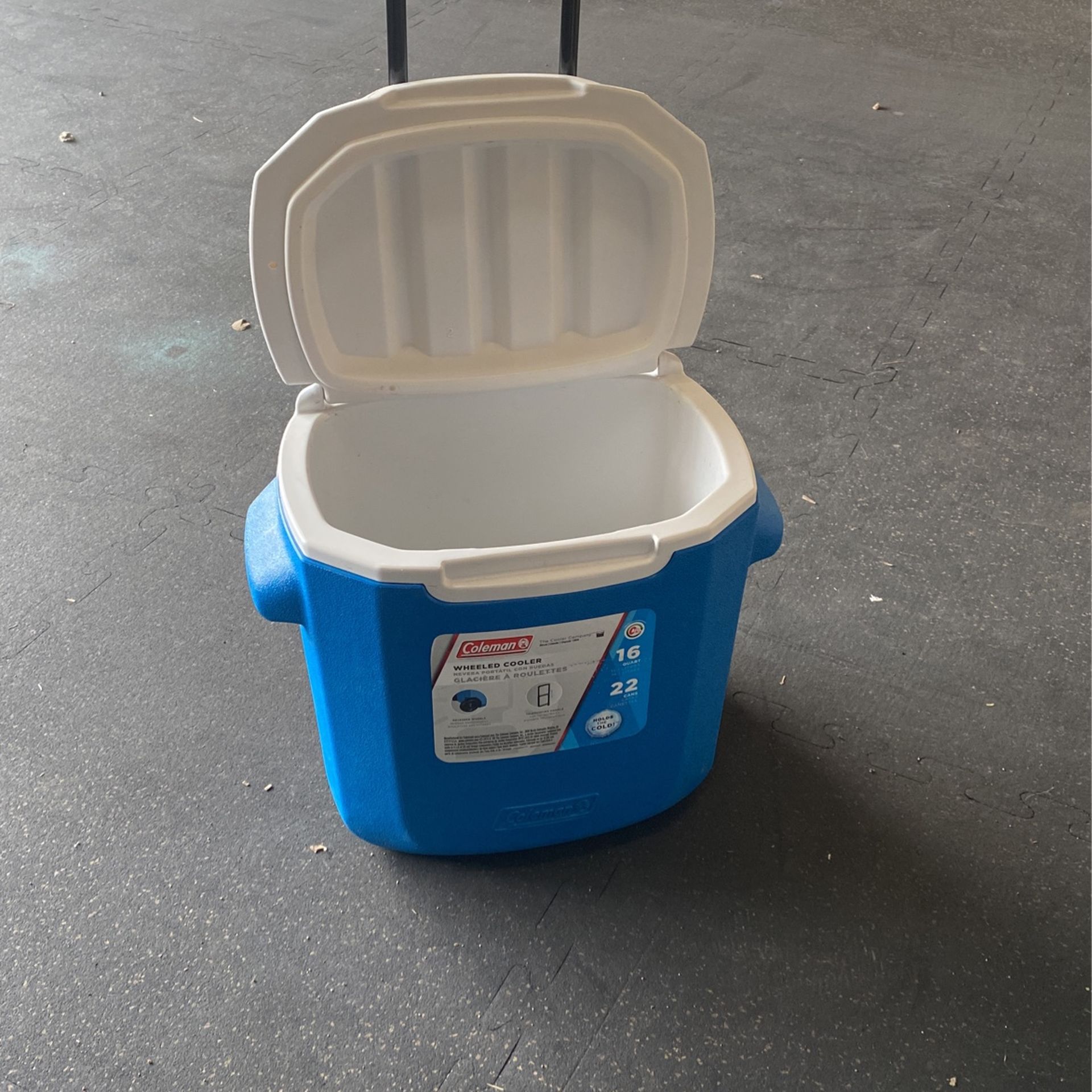 16 quart wheeled Coleman cooler. Holds 22 cans. Great little cooler to tote around events, parks, the beach when you don’t need a large one.