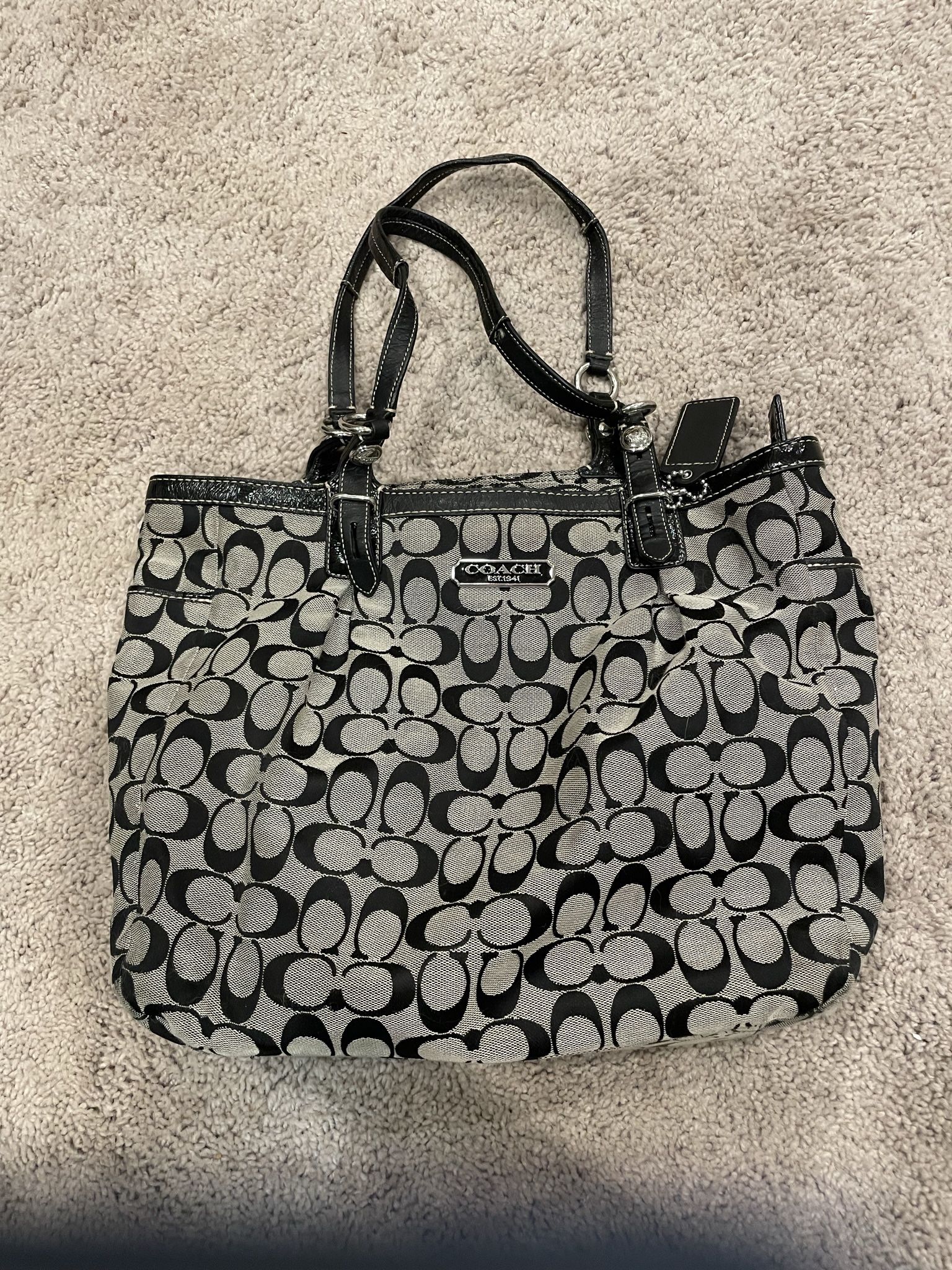 Black and Grey Canvas Zippered Faux Coach Handbag Hand Bag Purse & Wallet
