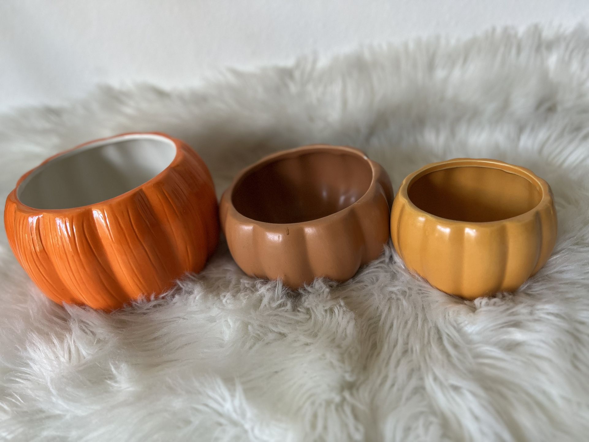 3 Ceramic Fall Pumpkin Planter. Pumpkin Planters Pots