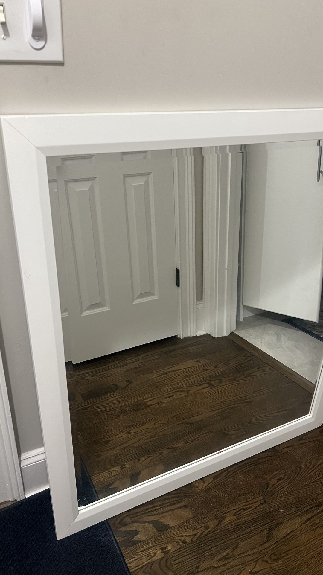 White framed square mirror