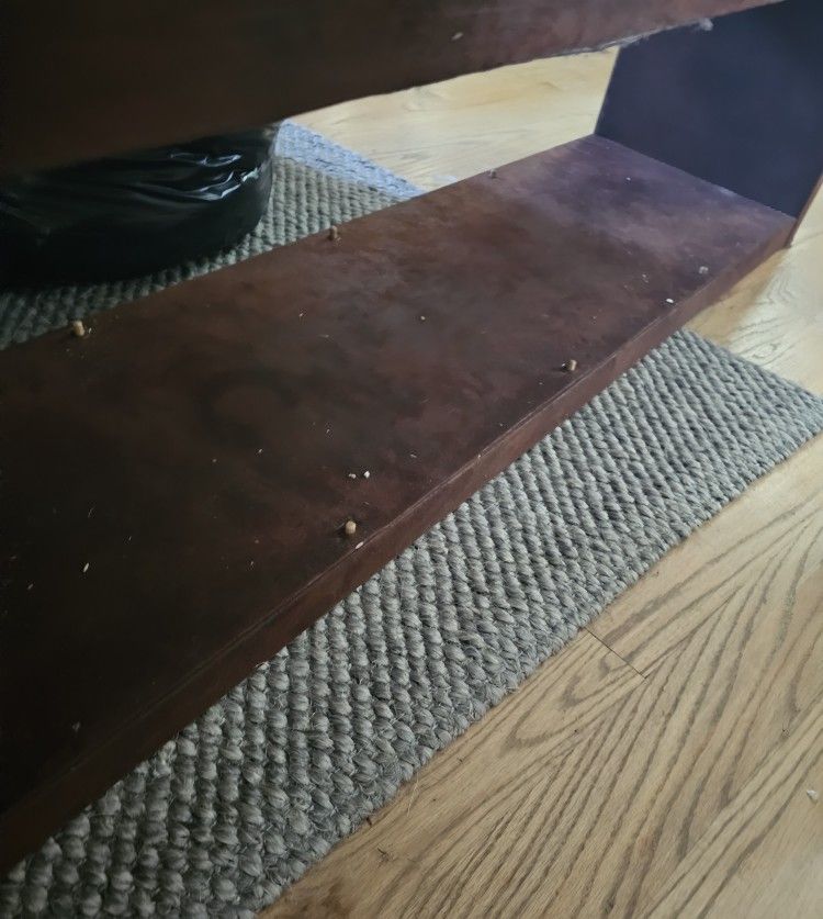 Great bohemian low profile TV stand in a maroon color and low pile velvet fabric. Item will be vacuumed prior to purchase and is easy to clean. Length: 72in Depth: 15in Height: 17in