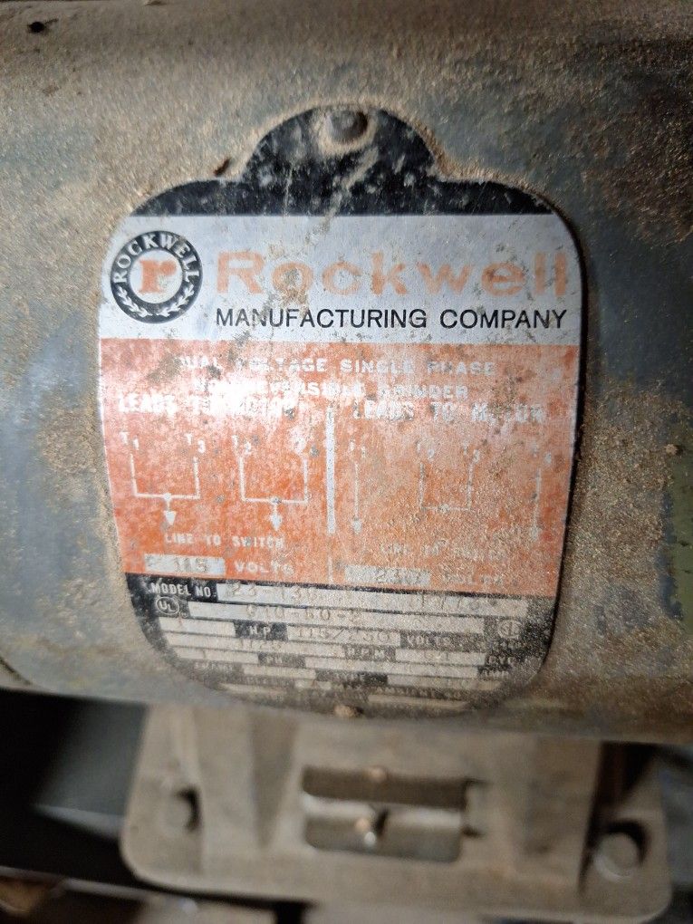 This is a beast 120/240 V Ten inch, dual wheels I have a fine wheel, the cover and toolrest, just have them off to use wire wheel. I can finish what I'm using it for, turn it off, go have a cigarette and come back and it is still spinning down because it is so well balanced Heavy Comes on cast iron pedestal Old school