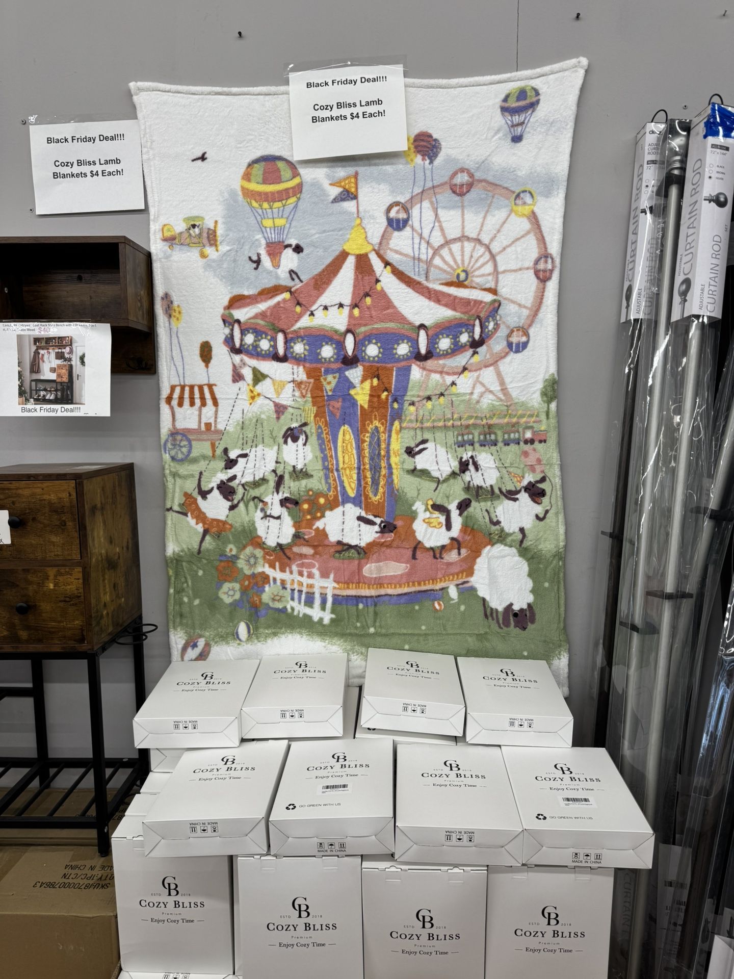 Beautiful and soft kids blanket with a lamb playground. Blanket is 60”L x 40”W Only $4 each!