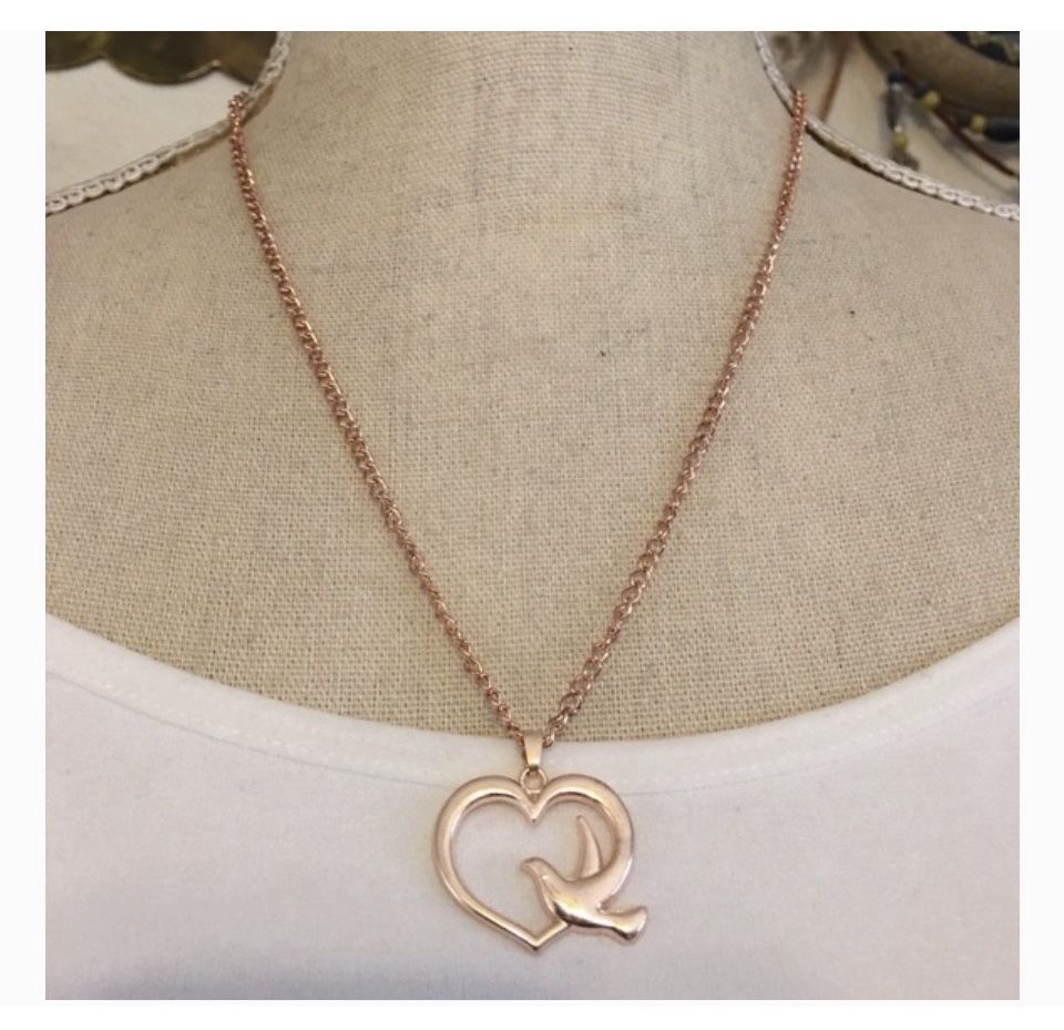 Rose gold tone Heart pendant with dove Dainty and pretty Lobster clasp Shiny finish EUC Always open to reasonable offers Fast shipping Smoke and pet free home Bundle to save (the more you buy the bigger the discount ) Please see photos for details (they are part of the description) Happy to answer any questions Thanks for stopping by !