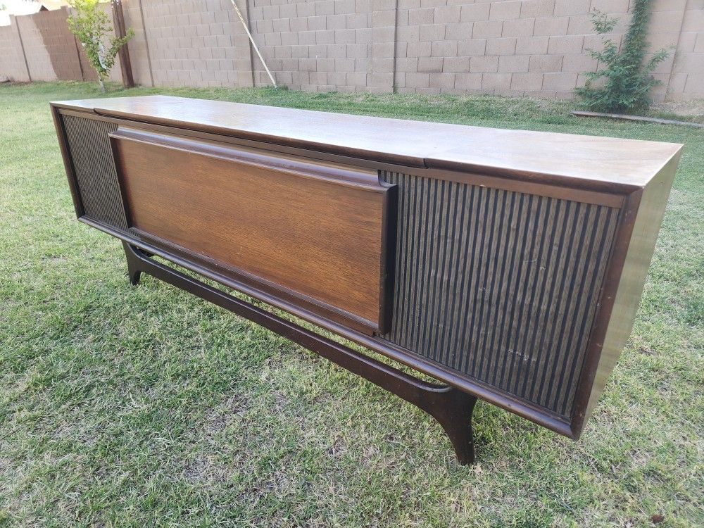 Mid century record console, everything is there. All components are there. It does power up but does not work at this time.