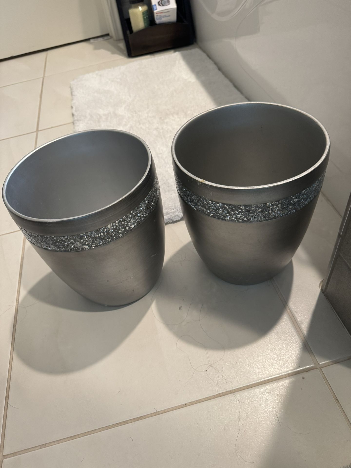 Decorative waste baskets.