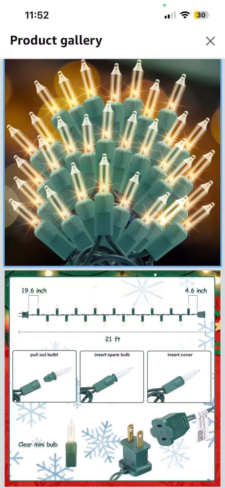 Strictly tested to meet US UL safety standards—safe for both indoor (Christmas tree, bedroom) and outdoor (patio, fence) use. With IP44 waterproof rating, it withstands light rain/snow (keep plug dry). Comes with 100 warm white incandescent bulbs (classic holiday light) and 21ft of lighted length. Includes 2 flasher bulbs, 2 spare bulbs, and 2 fuses for long-term use. Each string has end-to-end connectors—connect up to 5 sets for a total of 105ft of lights. Ideal for wrapping large trees, decorating patios, or creating a festive holiday backdrop. Flexible green wire blends with trees/bushes; easy to wrap or hang. Made of high-quality materials to resist breakage—reusable for multiple holiday seasons. Perfect for Christmas, holiday parties, birthday celebrations, or daily patio lighting. Decorate home, windows, restaurants, or shopping centers for a warm, festive vibe.