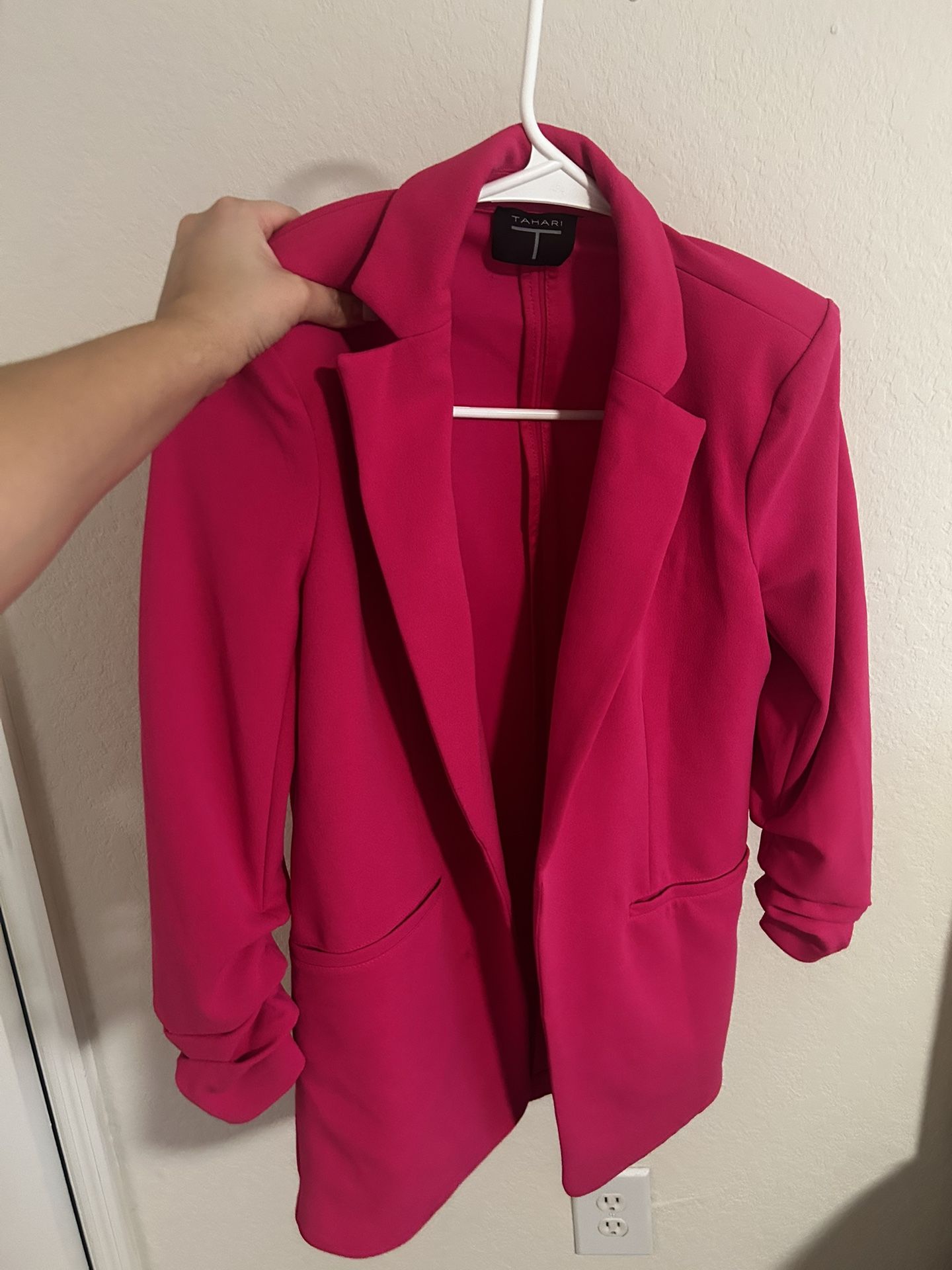 Tahari pink blazer. Gently used, stylish and perfect for work or outings. $15 or best offer. Size XS