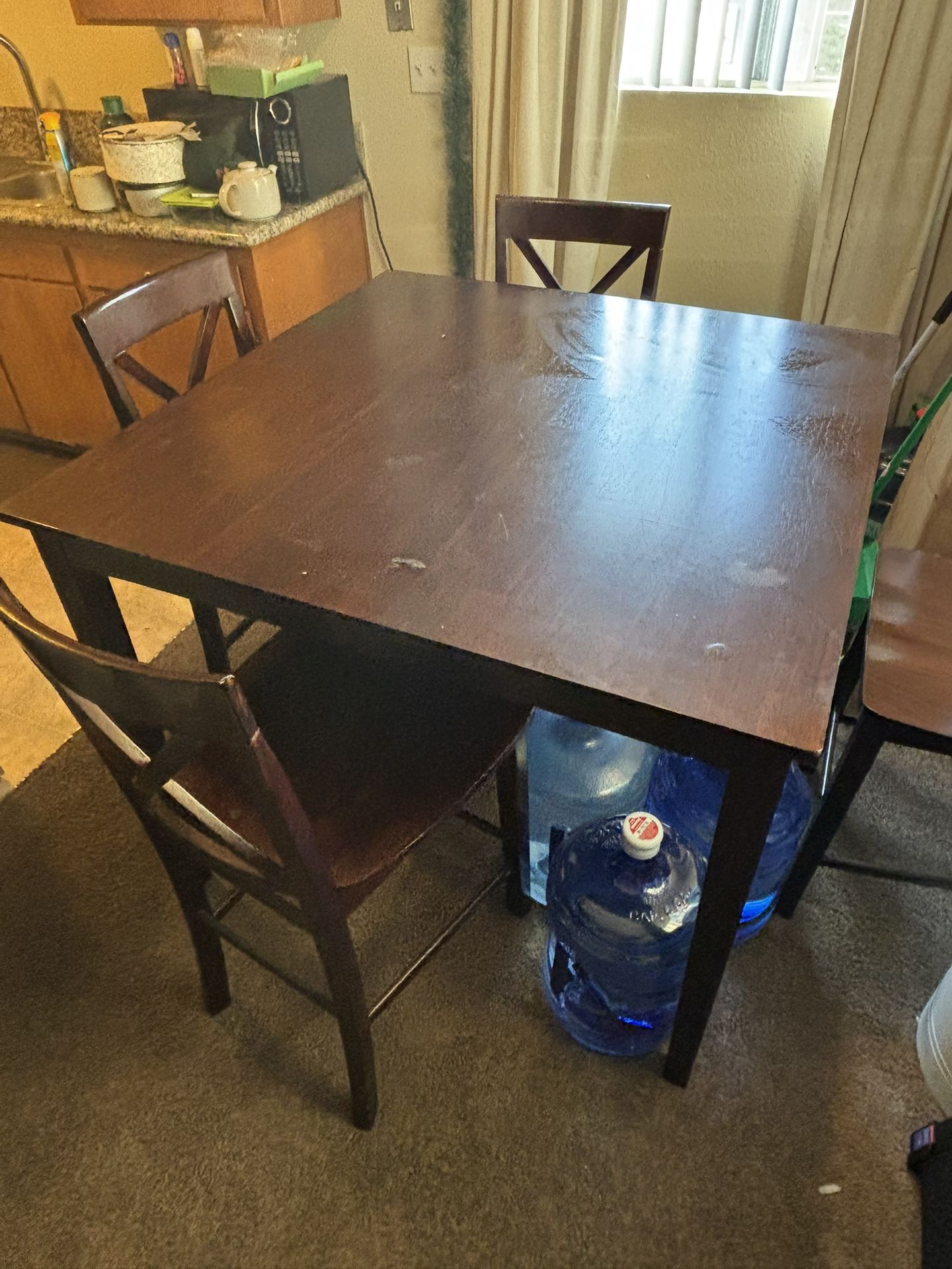 Moving asap and need to sell . Open to offers Living Spaces 42”W x 42”D x 36” H Percy 5 piece counter set
