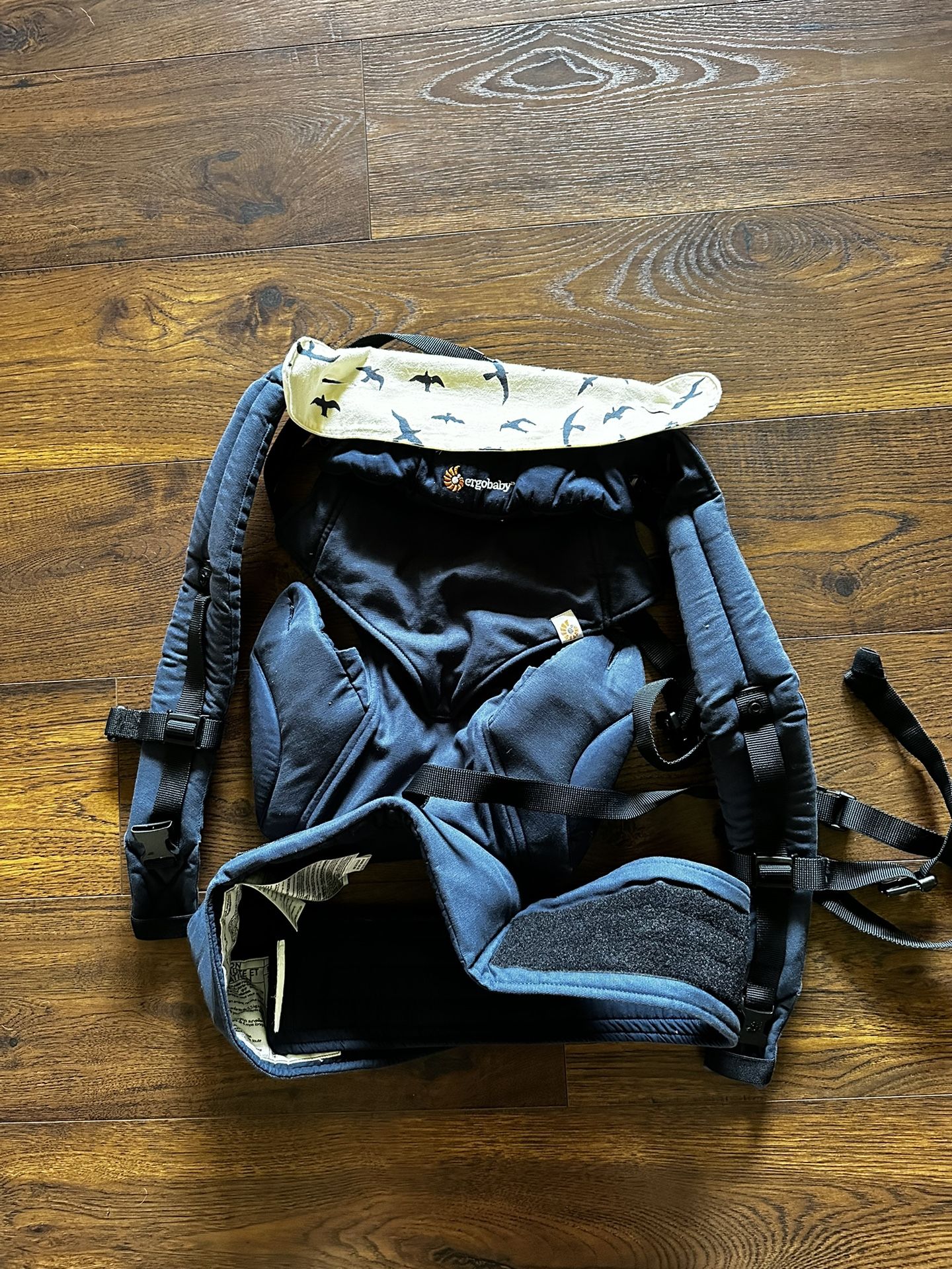 Excellent condition Ergobaby 360 infant carrier in navy. Burp shield included.