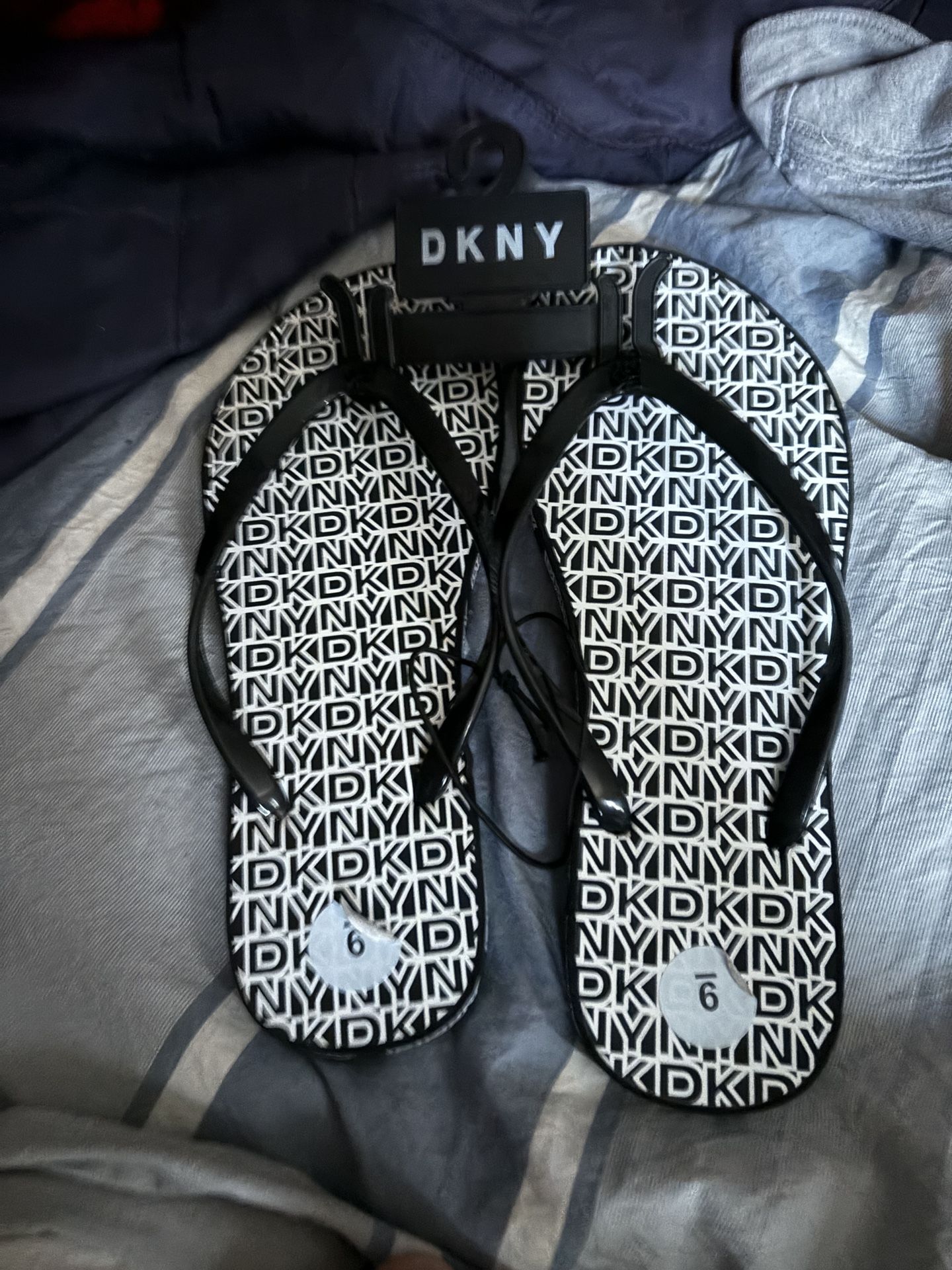 Brand new womens D KNY flip flops in a size 9. In black and white and black thongs.