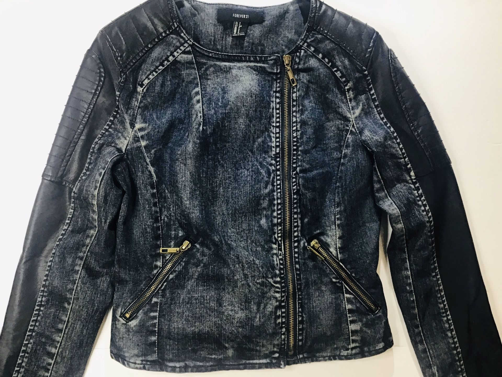 Jean Jacket with Faux leather sleeves Forever 21 size Small Junior