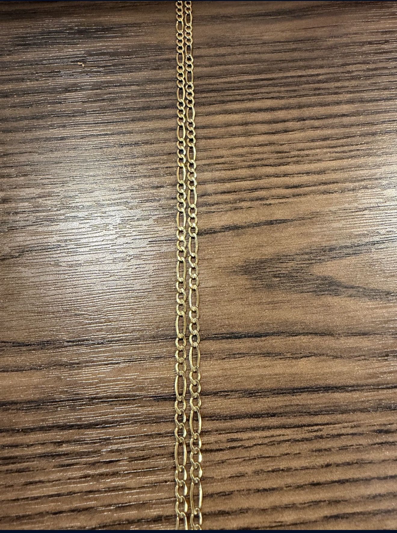 Figaro 14k gold necklace Weight: 4.0 grams (approximate) Length: 24 inch Metal: 14 solid gold Stamped: 14k Purchased at Anahiem Marketplace