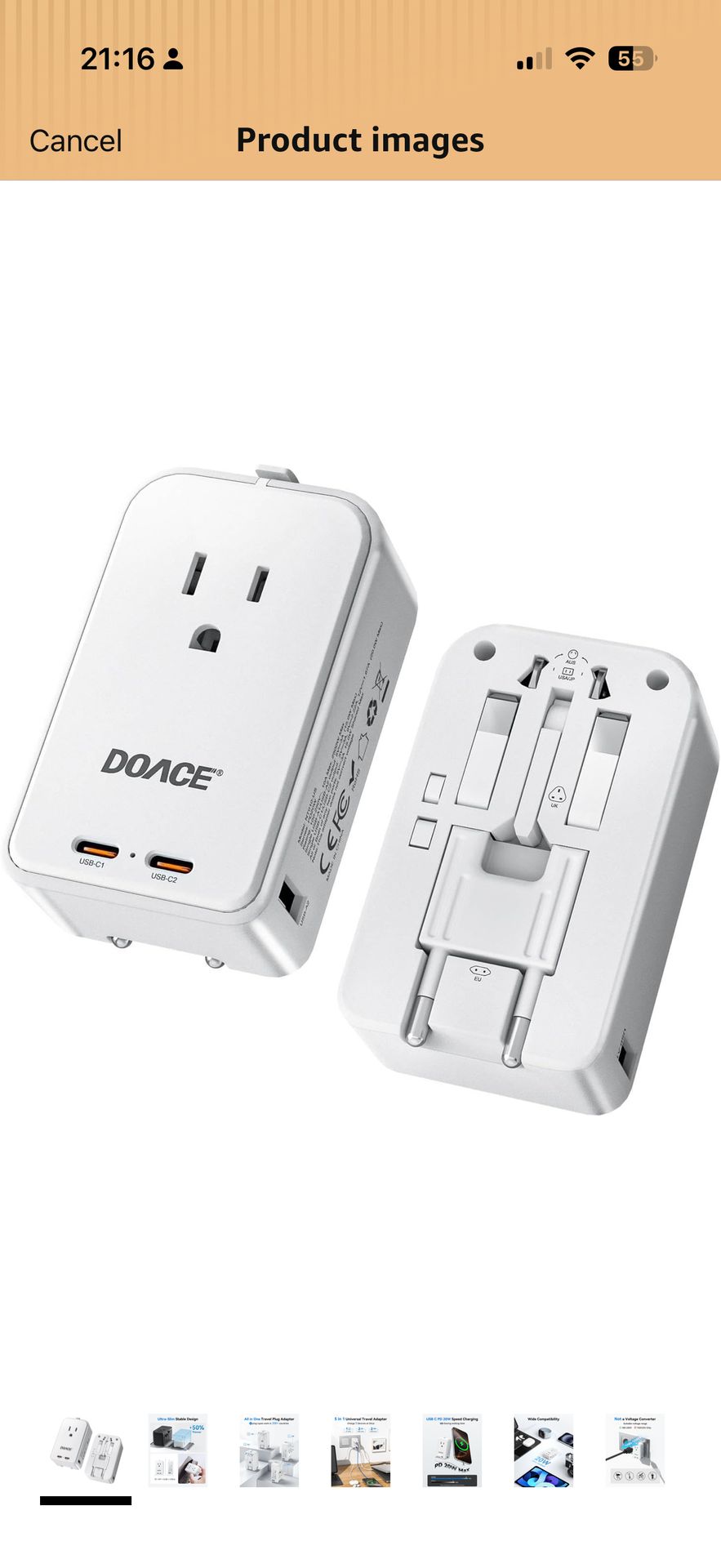 Top highlights ✈️Universal Travel Adapter for 200+ Countries:Built-in US/ UK/ AU/ EU - European travel plug adapters in a single compact body—no extra adapters or loose pieces to carry. This international travel adapter is designed for Europe, Asia, Australia and most worldwide destinations, making it a reliable travel essential for vacations, business trips, cruises, and study abroad. ⚡5-in-1 International Travel Adapter for Daily Devices: Features 1 AC socket, 2 PD 20W USB-C ports, and 2 USB-A ports (15W) so you can charge up to five devices at the same time. Perfect for smartphones, tablets, cameras, Bluetooth earbuds, power banks and more when hotel outlets are limited. 📦Compact Mini Size & Lightweight for Easy Packing: Measuring only 3.33 × 1.97 × 1.18 inches, this adapter easily fits into your pocket, backpack, or carry-on without adding bulk. Ideal for minimalist travelers who want powerful functionality without sacrificing luggage space. 🛡️Safe & Durable International Power Adapter: Built with integrated safety shutters and multi-protection technology against over-current, overheating, and short circuits. Durable construction ensures stable, dependable charging trip after trip, giving you peace of mind wherever you travel. ❗️Not a Voltage Converter: This international travel adapter does not convert voltage—please make sure your device supports 100V–250V dual voltage. If you plan to use a hair dryer, straightener, or curling iron with the European plug adapter, ensure they are dual-voltage compatible.