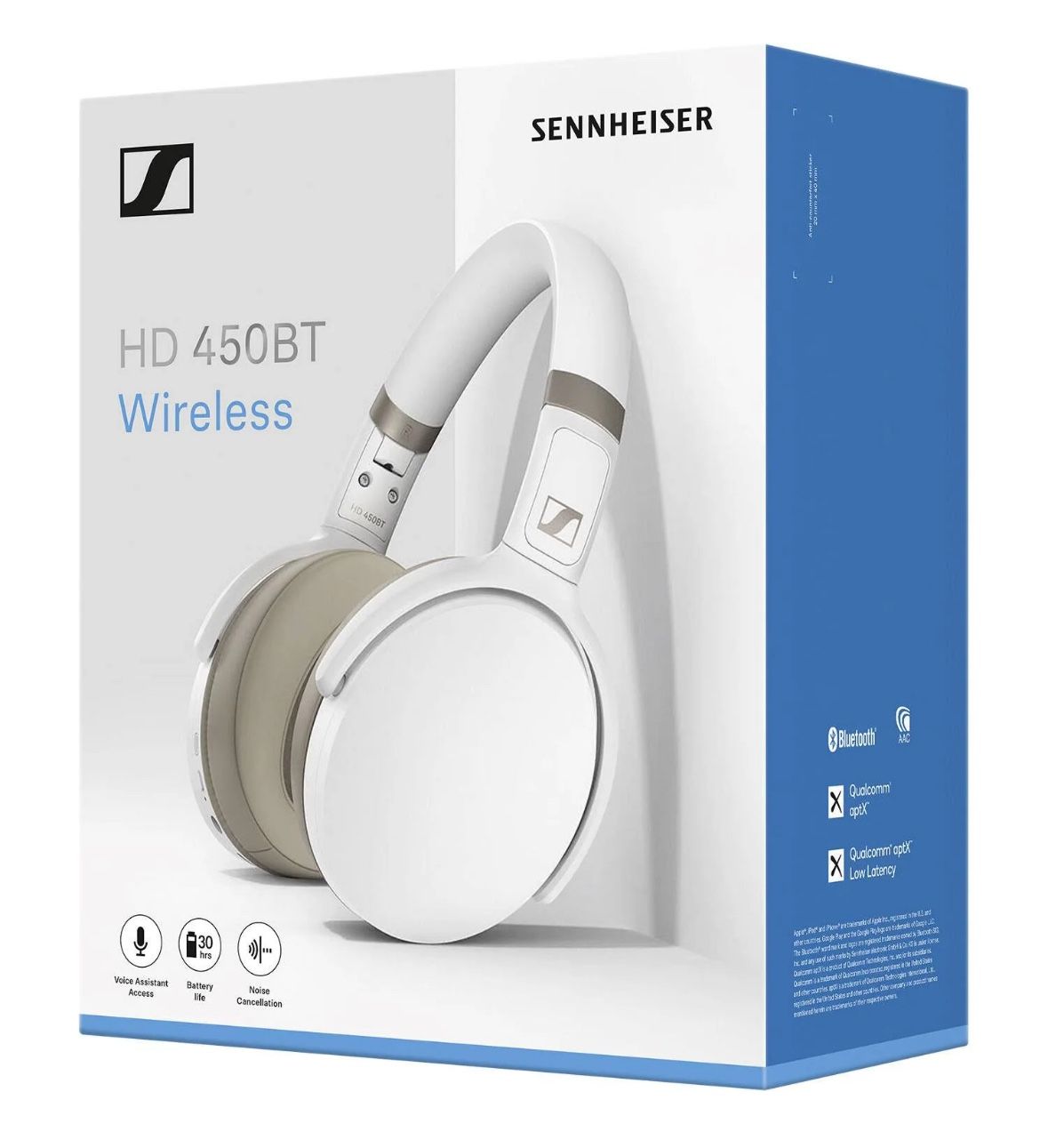 Bluetooth 5.0 Wireless Headphone with Active Noise Cancellation - 30-Hour Battery Life, USB-C Fast Charging, Virtual Assistant Button, Foldable - White