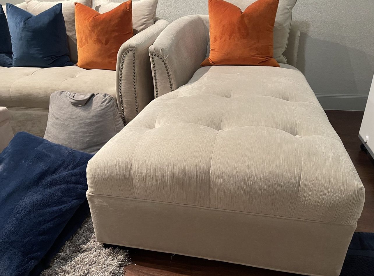 Great deal on living room setup! Comes with both couches All the pillows, (including body pillow and resting pillow Blanket, Foot rest / storage Must be able to pick up from Sugar Land