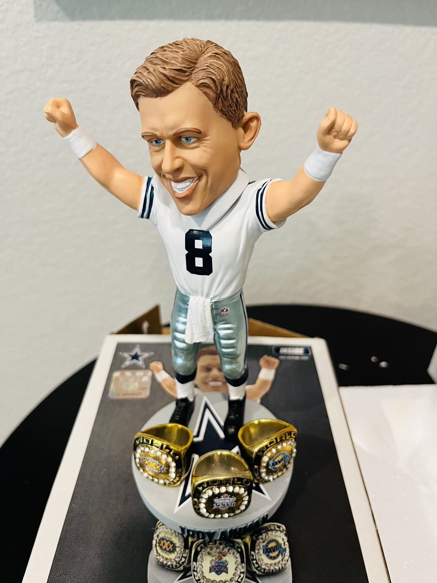 Troy Aikman Dallas Cowboys 3X Championship Rings BobbleHead
