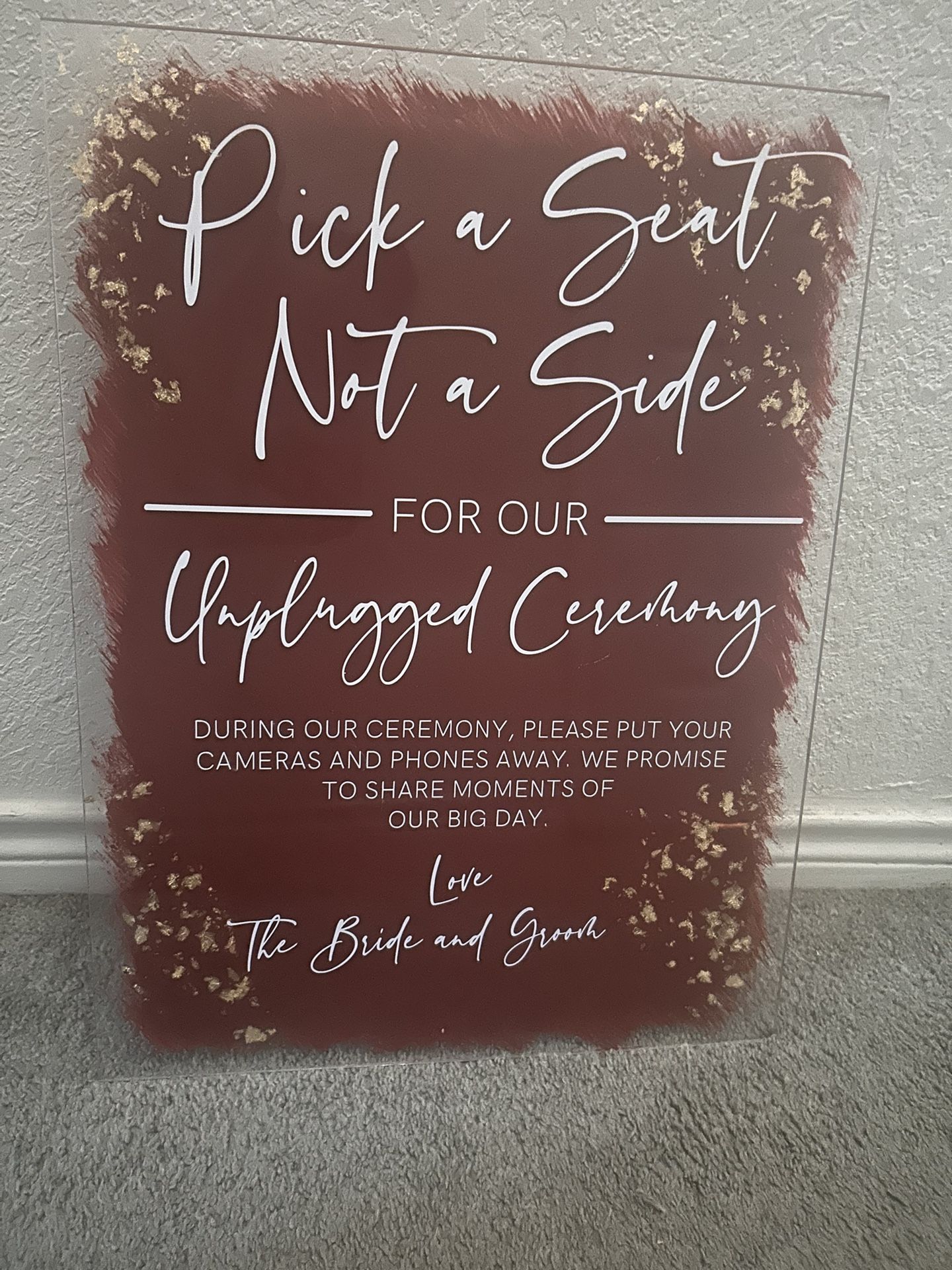 Wedding sign color in the back is painted on so it can be changed if needed
