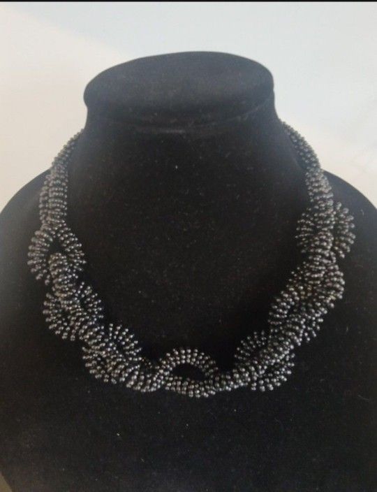 Women's Elegant Black Braided Resin Necklace Fashion Jewelry Accessory