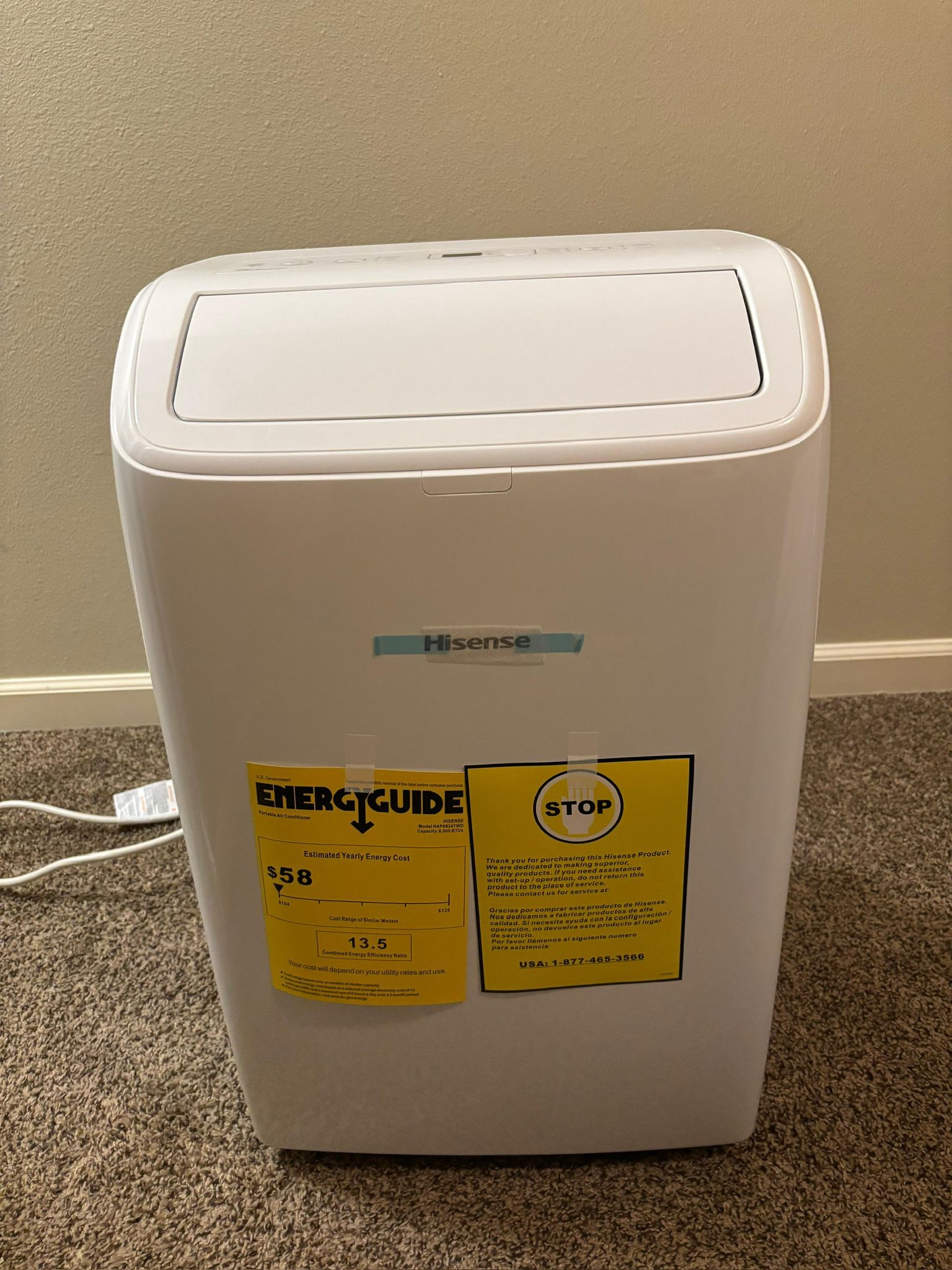 Hisense 8,000 BTU Dual Hose Portable AC – Excellent Condition