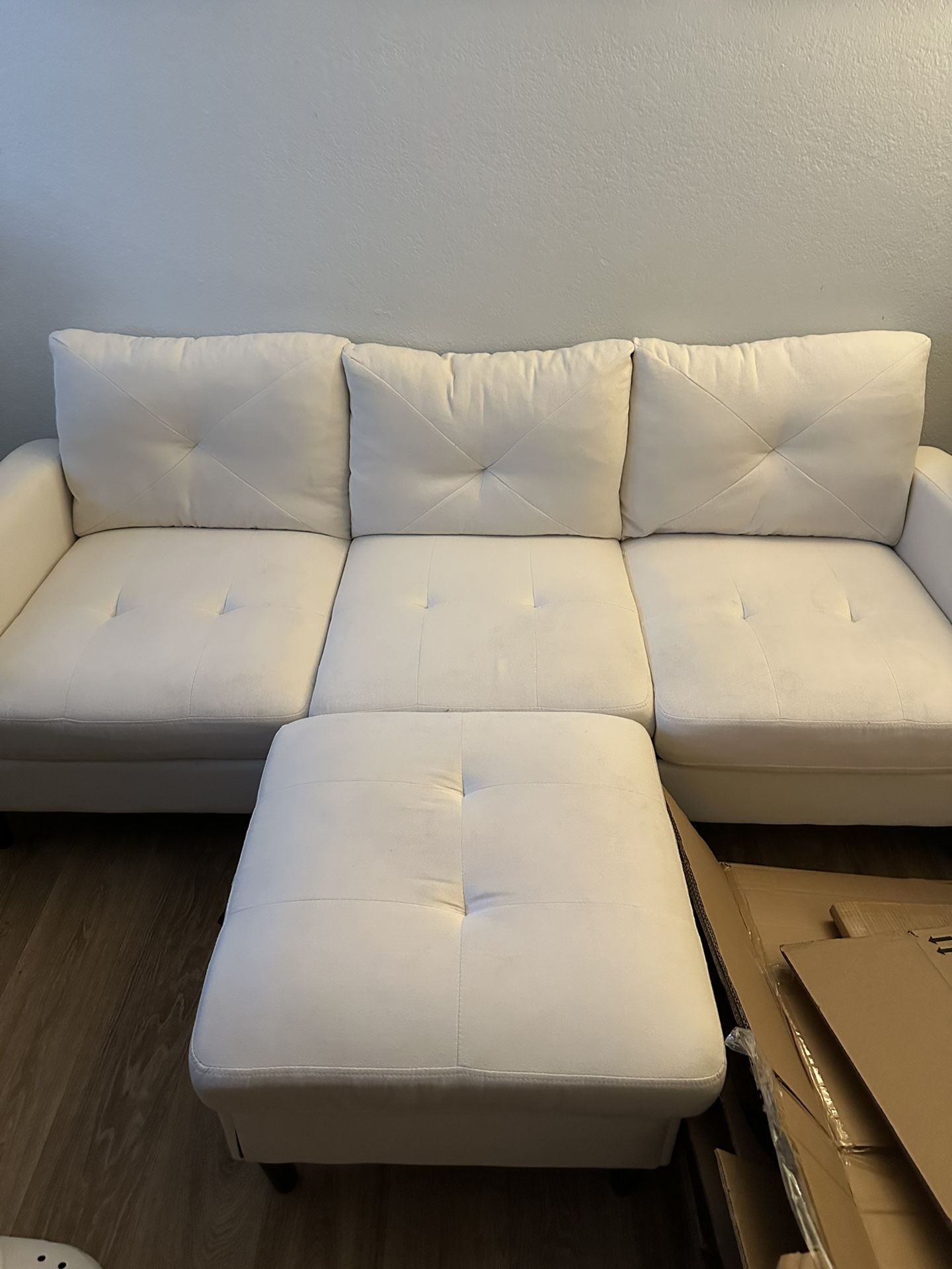 78' Modern Sofa, 3-Seat Linen Convertible Sectional, Beige with Storage Ottoman, L-Shape for Small Spaces Has cup holders, storage pocket on the side, ottoman for storage Seat cushions and back cushions are removal with zippers Barely used