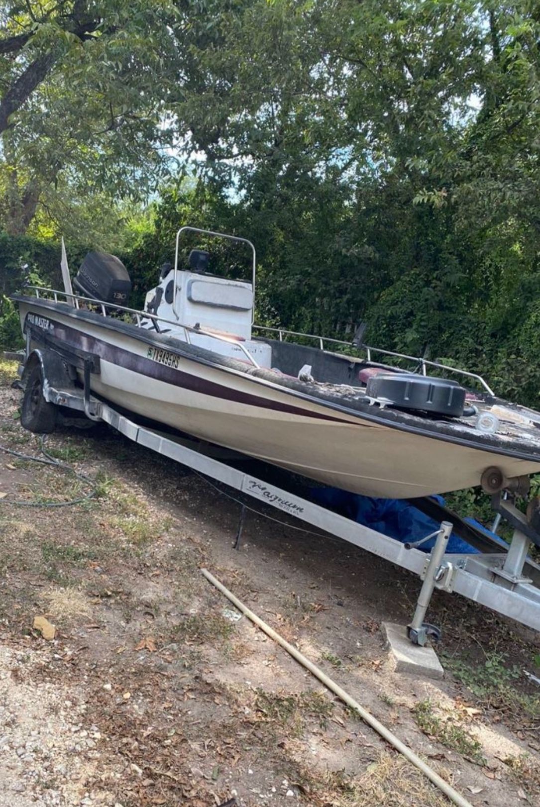 Selling boat as is. Will clean out before sale.Needs a battery and has a hole in the floor board.seating and rug is tearing a bit. Motor will turn on and sounds just fine, apart from that not to sure if anything is wrong with it. Clean title!