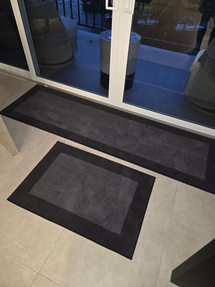Two brand new rugs never used 2x3 and 2x7 bought on Amazon dark blue and gray contemporary. Also they are washable