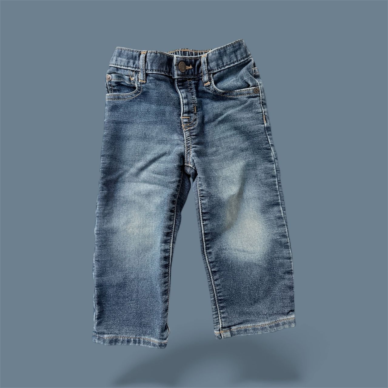 baby gap 18-24 months blue jeans These Gap Denim toddler jeans in size 18-24 months are a stylish and versatile choice for your little one. Made from 100% cotton denim, they feature a solid blue color and a zip and button closure for easy dressing. The slim straight style and adjustable waistband ensure a comfortable fit, while the pockets add a practical touch to the design. Perfect for casual occasions, these machine washable jeans are a durable and fashionable addition to your child's wardrobe.