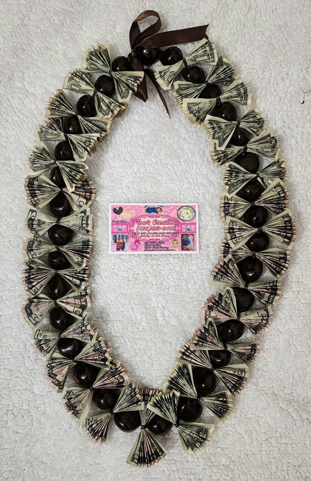 Graduation Hawaii Kukui Nut Money Lei Necklace Leis Pre-order your Leis 50% deposit required to place your order. $78 comes with $30 on each lei Check out my page. There are many other Leis designs to choose from starting at $25 & Up.
