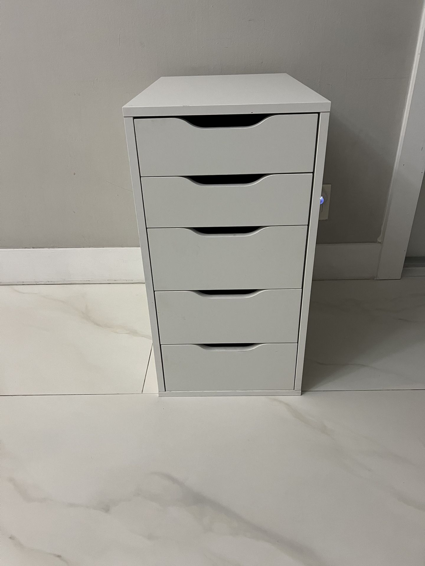 Brand: IKEA Color: White Pattern: Solid Model: Alex Type: Drawer Unit Shape: Rectangle Style: Modern Number of Drawers: 5 Material: Particleboard Measurements: 22 7/8”L x 14 1/8”W x 27 1/2”H 227/8" Room: Bathroom, Bedroom, Dining Room, Home Office/Study, Kitchen, Living Room, Garage, Hallway, Laundry/Utility Room, Patio Features: Drawer stops prevent the drawer from being pulled out too far. This unit can be placed anywhere in the room because it is finished on the back. Used, in good condition. It has some signs of wear. See photos for more details. Hablo español.