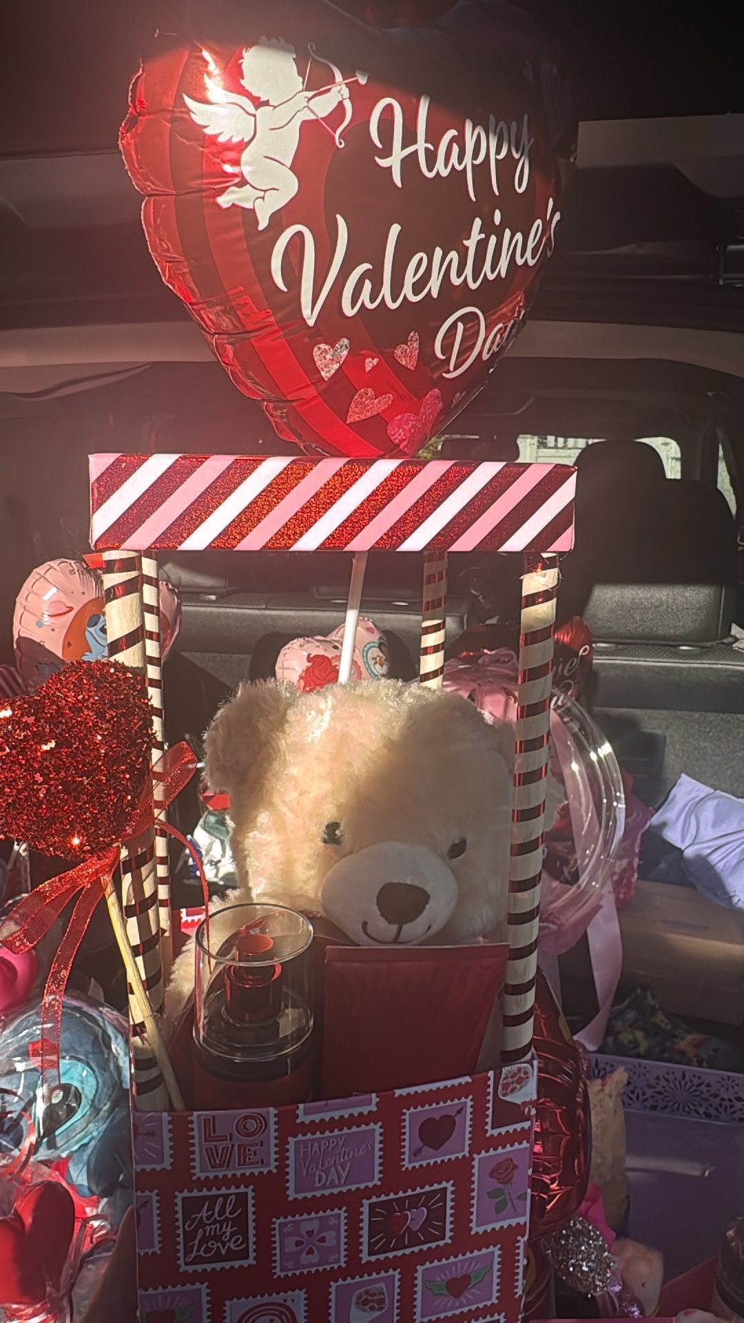 Teddy bear in a box with box ๐๏ธ f chocolates ballon and bath and body works body mist and body cream