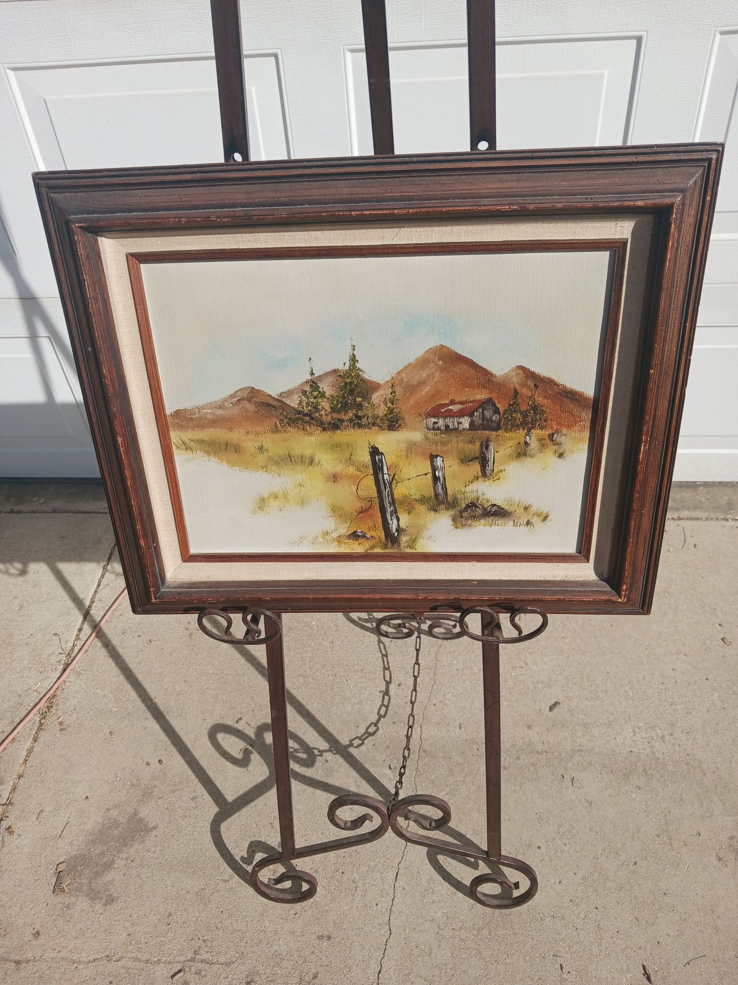Small Vintage framed farm house oil on canvas signed Linda