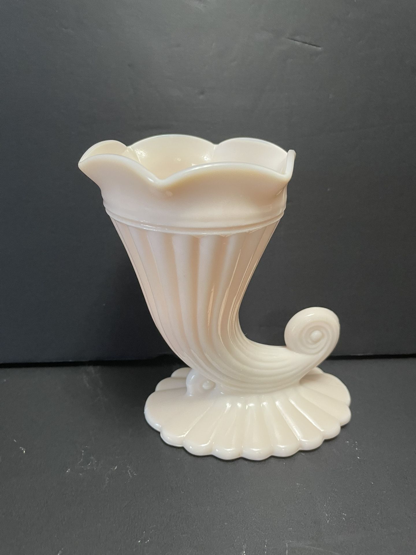 RARE FIND!! 1950’s Jeanette Pink Milk Glass Cornucopia Vase