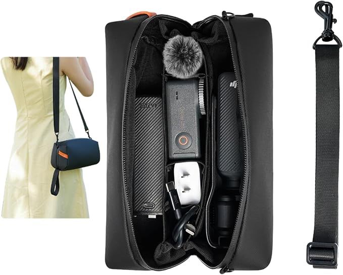 About this item 【Universal Compatibility】The Carrying Case perfectly fits DJI Osmo Pocket 3, DJI Action 5 Pro, Insta360 X4, and more. Securely stores tripods, microphones, camera batteries, camera clamps, SD cards, chargers, power supply, and other accessories. At 21 cm long, the bag easily accommodates battery handles from multiple brands. 【Lightweight & Portable】Engineered for on-the-go Pocket 3/Action 5 Pro/Insta360 X4 shooting, it offers 3 carrying styles. The detachable and adjustable shoulder strap supports single-shoulder or cross-body wear, while the built-in top handle allows easy hand-carry. Compact enough to slip into camera backpack, it's ideal for outdoor shoots. 【Organized Storage】The Pocket 3 bag/Action 5 Pro case/Insta360 X4 handbag features built-in dividers that keep every item in place. So it is not easy to lose these camera accessories. Each compartment has a dedicated space for easy access immediately after opening the bag. 【Waterproof & Durable】The exterior uses a unique waterproof PU film, and the interior dividers are precision-matched to the DJI Osmo Pocket 3 Creator Combo/DJI Action 5 Pro/Insta360 X4 accessories. No compression worries—rugged and built to withstand harsh shooting conditions. 【Package List】Carrying Case*1, Adjustable Shoulder Strap*1, Dimensions: 21*10*11 cm / 8.3*3.9*4.3 in, Weight: 196 g / 0.43 lb.