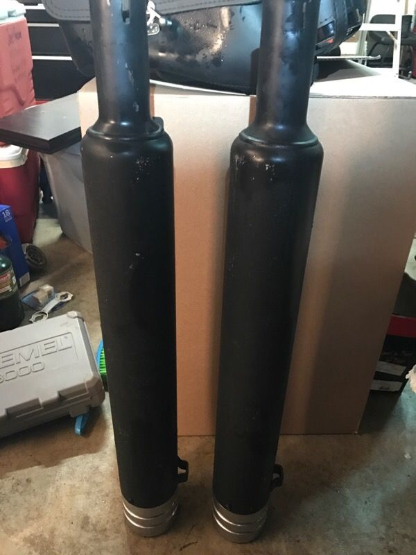 Harley Davidson Screaming Eagle Pipes. They aren't in great condition and I Plasti-Dipped them to change the look. That's why they are priced so low.