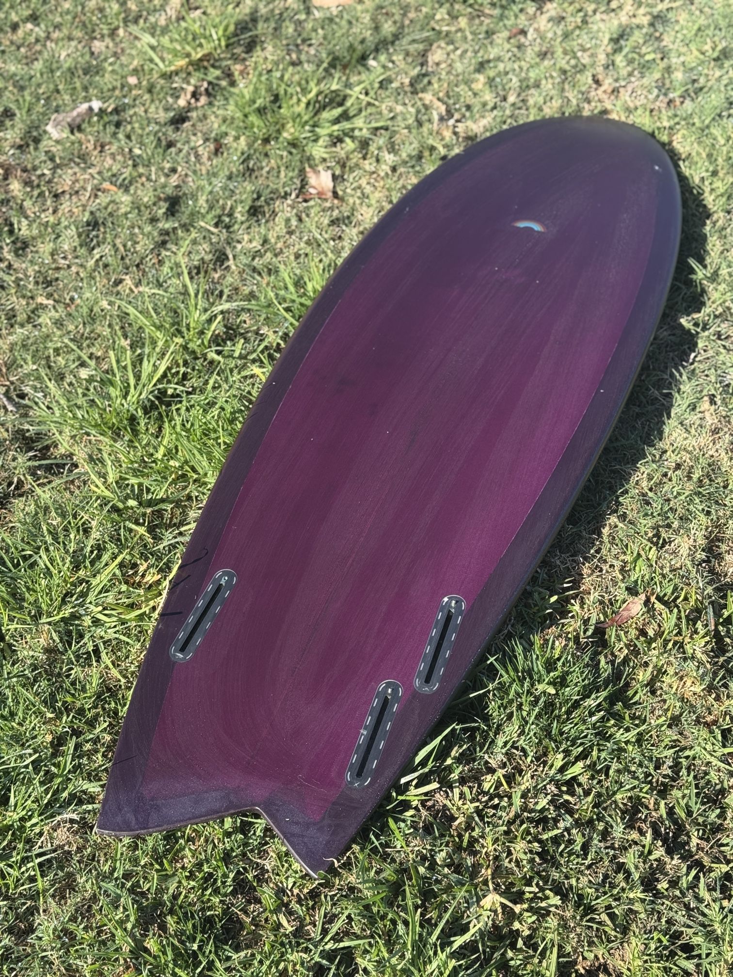 Beautiful little fish asymmetrical regular foot surfboard 5’7 x 20 1/2 roughly in the 30 L range. Board is based on an album asym fish. Used a handful of times, unfortunately too small. Minor pressure things and two tiny little solarez repairs. Ready to surf 8out of 10 conditions.