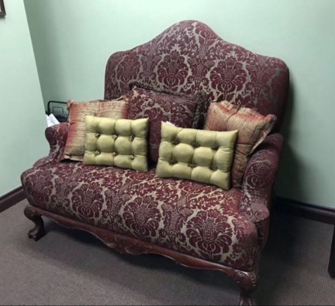 Antique Victorian Loveseat with Pillows. Was used for decoration only. Solid wood, very sturdy and good quality. Beautiful piece, must see to appreciate. Great for party decor, stagings, bedrooms, sitting rooms, etc. Reasonable offers accepted.