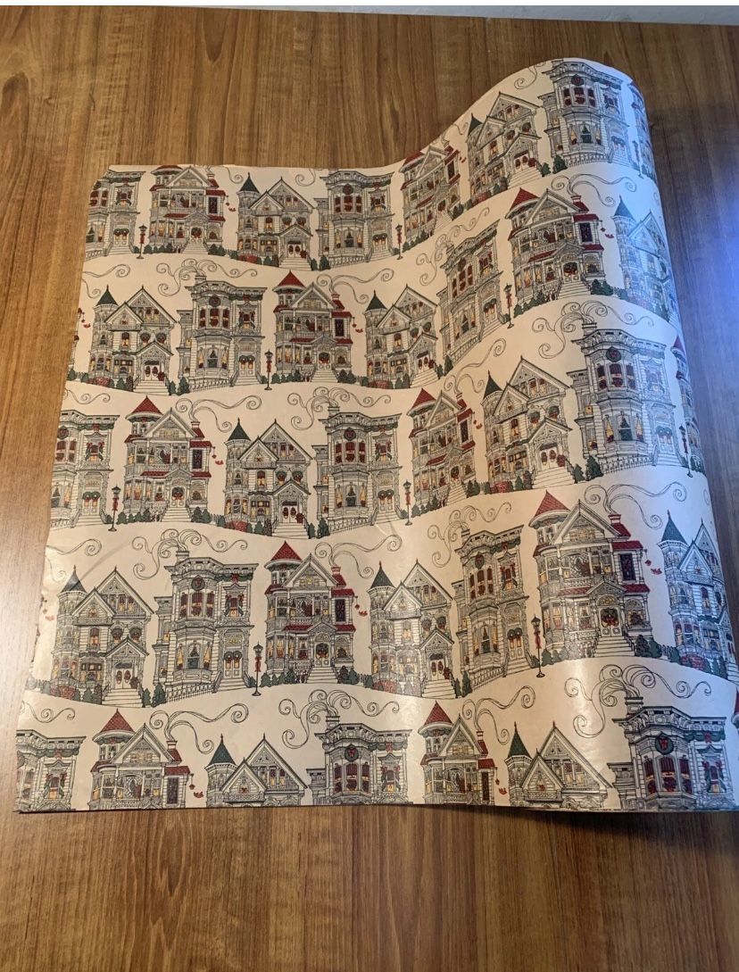 24" Wide Vtg CHRISTMAS WRAPPING Paper Roll Department Store Victorian Homes 13lb Cash only please