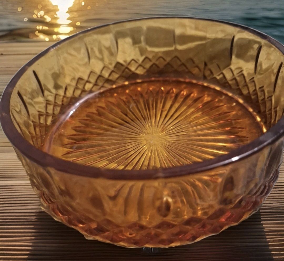 Vintage Amber Glass 70s Candy Dish (No lid)