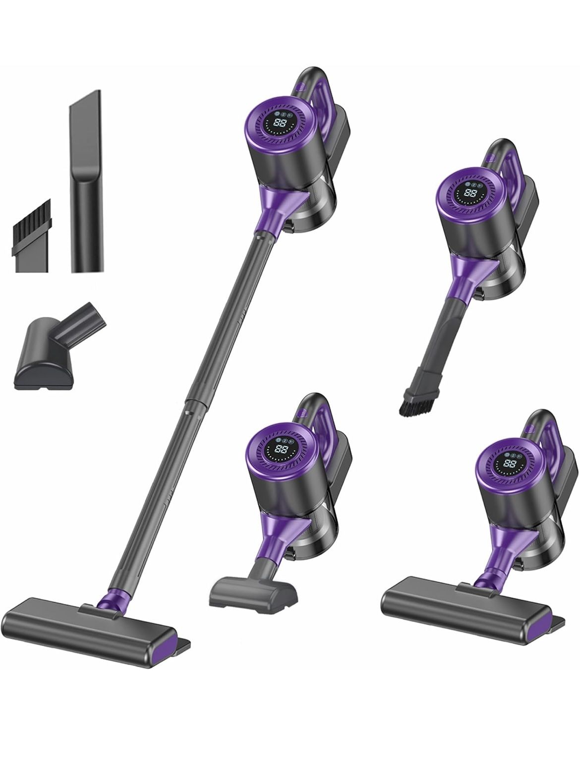Cordless Vacuum Cleaner, Powerful Suction Vacuum Cleaners for Home, Stick Vacuum Cordless Rechargeable with LED Screen and 3-Speed Suction, Lightweight Handheld Vacuum for Pet Hair, Hard Floor, Carpet