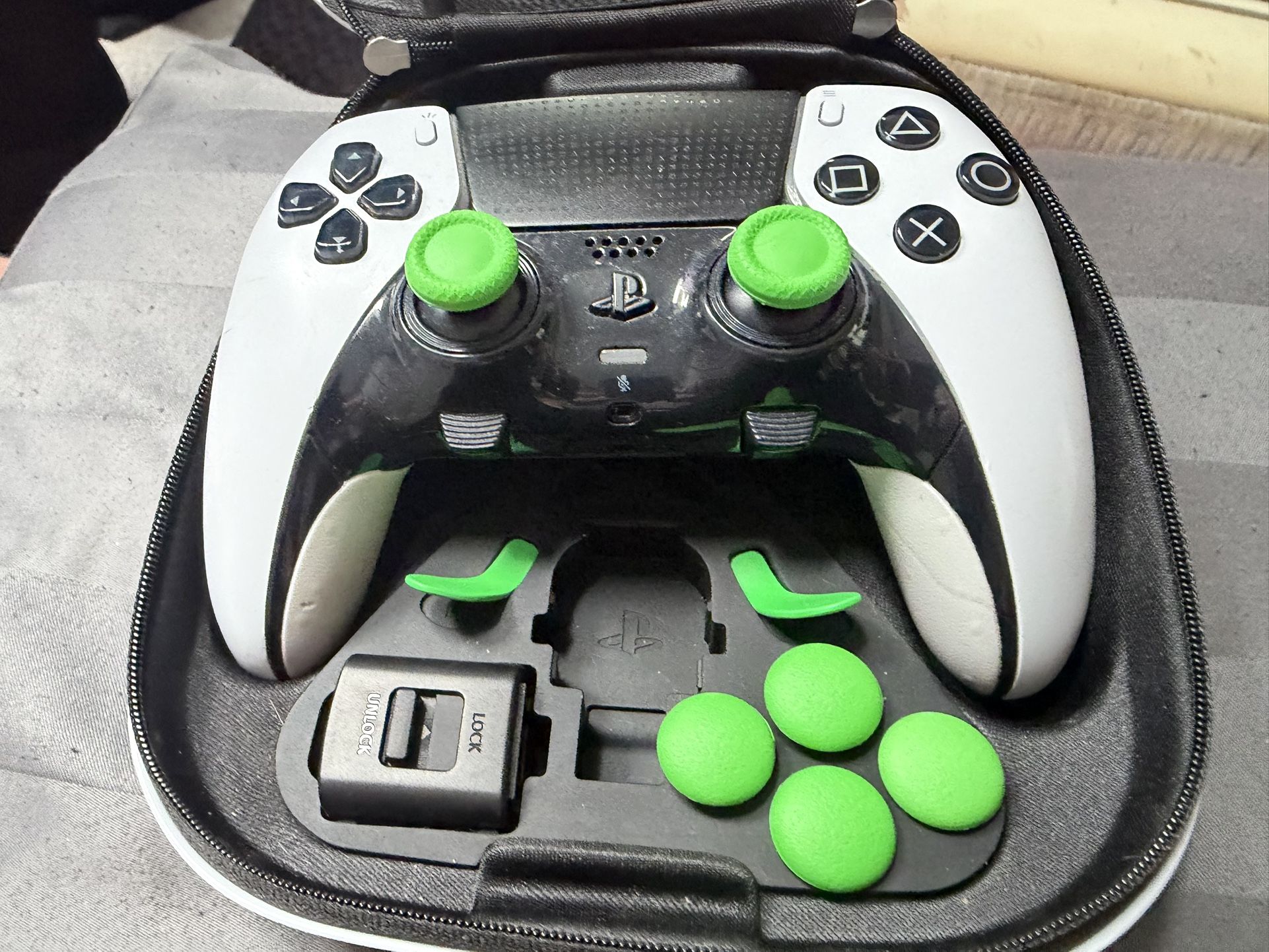 PlayStation Dualsense Edge controller with custom paddles and Joysticks.